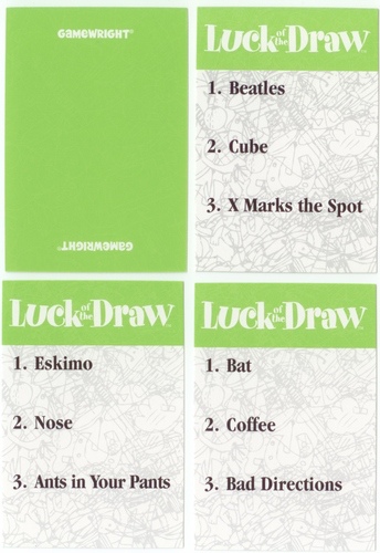 幸運塗鴉(Luck of the Draw)遊戲訓練玩家們的認知力、表達力、觀察力及理解力,並測試玩家們的機運,屬於藝文類的桌上遊戲。遊戲中所運用的機制包括「線條繪製」、「紙和筆」及「投票」等,相當適合在派對場合中進行。